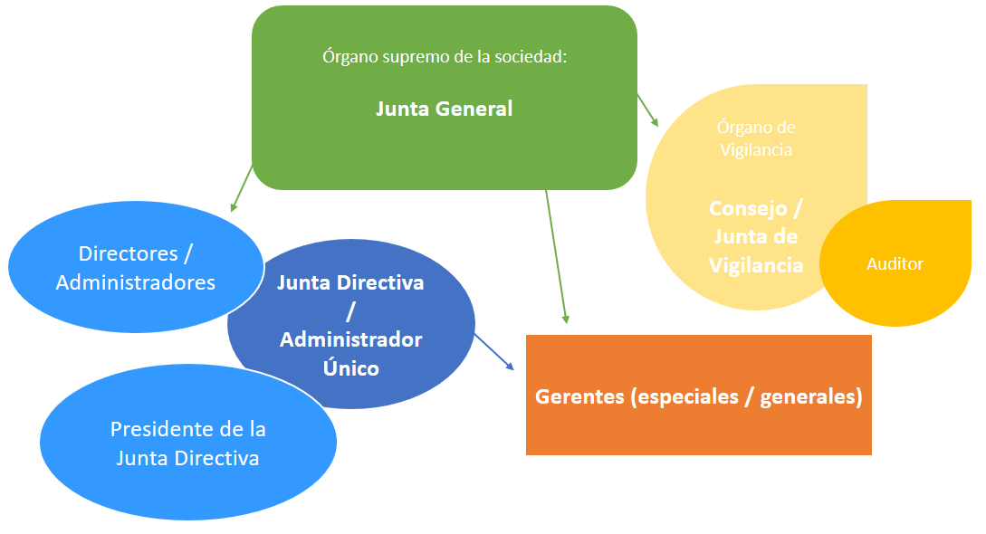 - Junta Directiva / Administrador Único – Órgano máximo directivo de la sociedad anónima en el que la Junta General delega la dirección.